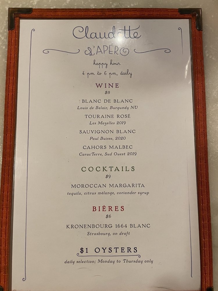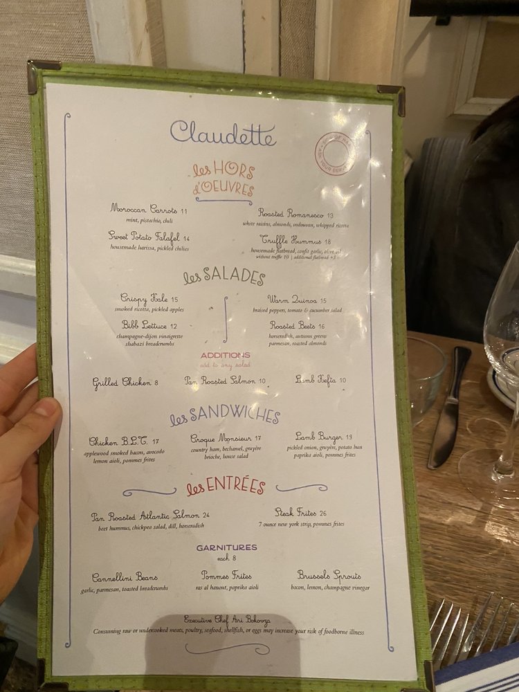Claudette, a French-Mediterranean-Seafood restaurant located in New York City, offers a trendy and intimate dining experience. With options for outdoor seating, private dining, and a full bar, Claudette caters to various preferences. Customers praise the flavorful food, such as the truffle hummus and salmon with verte sauce, as well as the attentive service. The ambiance is described as cute and cozy, making it a perfect spot for a date night or a casual gathering. Highlights include the Tuna Carpaccio, Lamb Tagine, and Tiradito of Salmon. While some dishes may be on the pricier side, the unique flavors and quality ingredients make them worth it. Overall, Claudette receives high praise for its atmosphere, service, and delicious dishes, making it a must-visit for French cuisine enthusiasts.